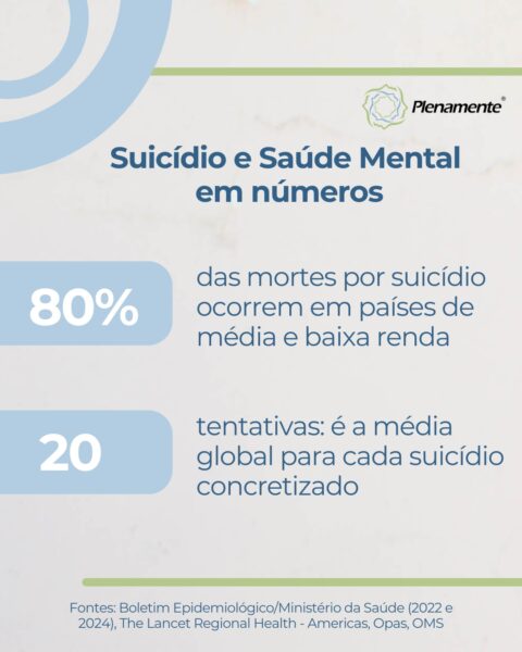 No Brasil, os registros se aproximam de 14 mil casos por ano, ou seja, em média 38 pessoas cometem suicídio por dia. Ainda segundo a OMS, no Relatório de Saúde Mental de 2022, o suicídio é a segunda principal causa de morte entre jovens de 15 a 29 anos no Brasil.